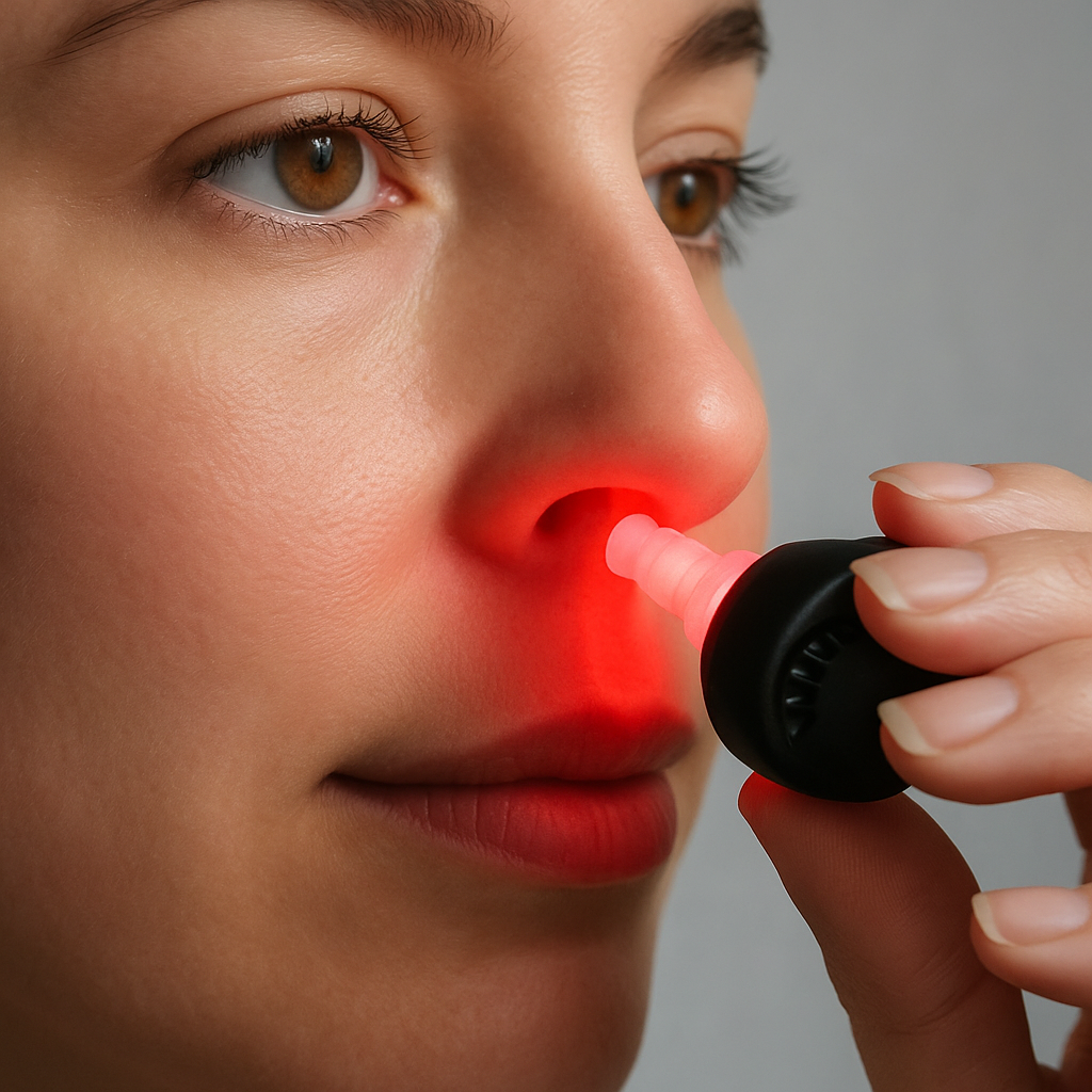 Notre appareil à lumière rouge ciblée agit directement à l’intérieur des voies nasales pour: